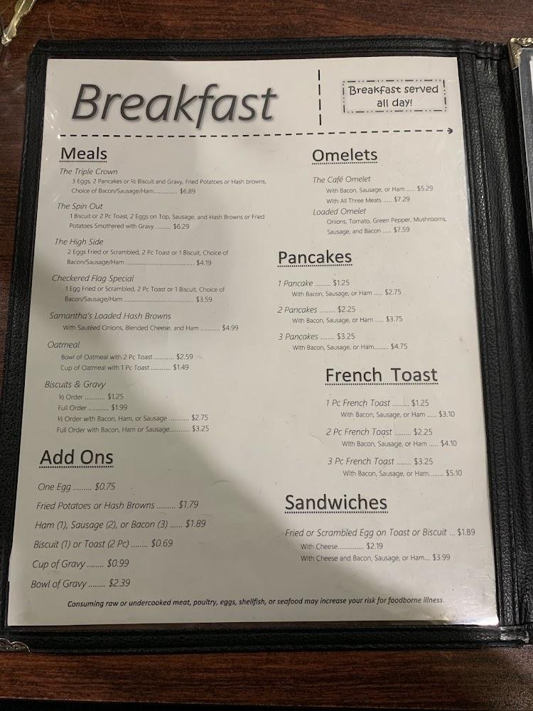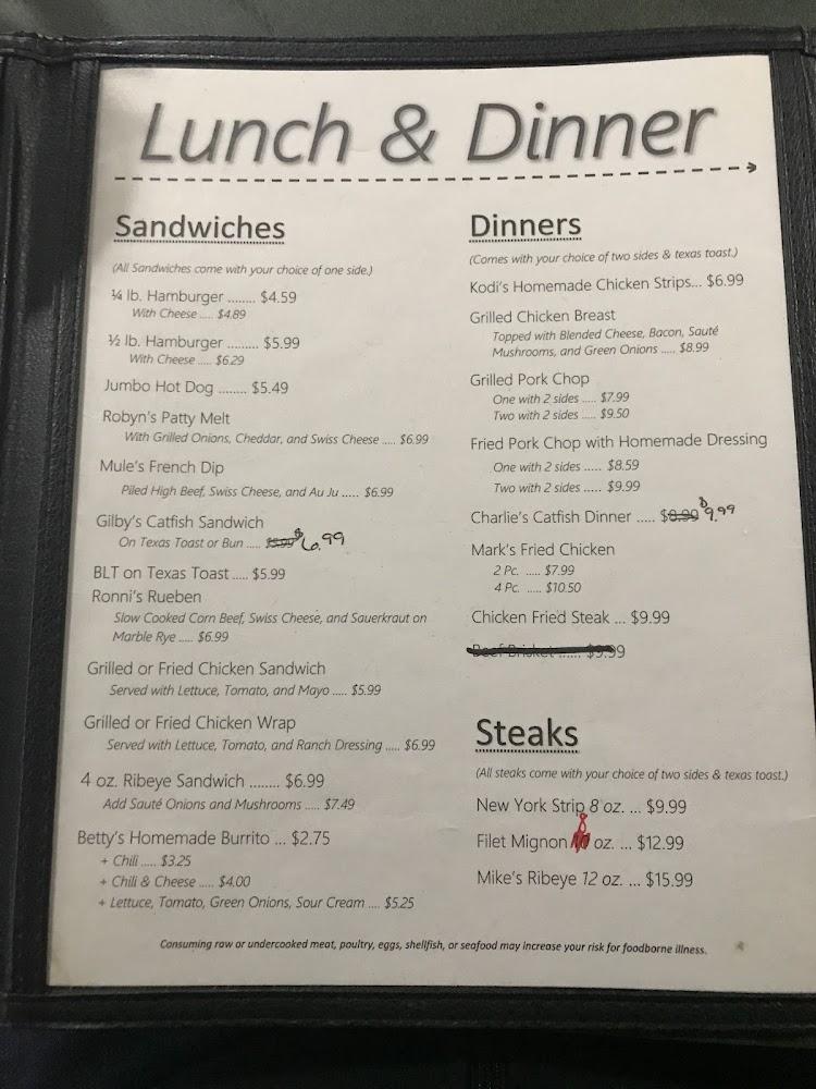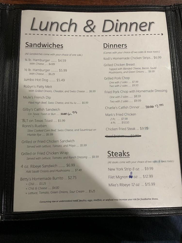 Carla's Cafe features a diverse menu filled with traditional comfort food. Breakfast options include hearty plates of pancakes and omelets. Lunch and dinner offerings boast burgers, sandwiches, and satisfying entrees like grilled chicken and pork chops.
